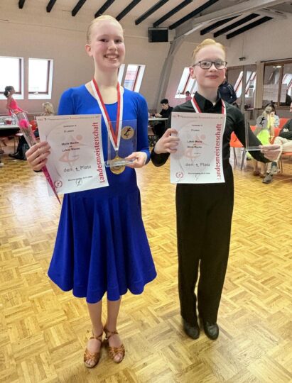 Heimspiel für Lukas & Marie Macke sowie Marcel & Taisija Geser bei den Gemeinsamen Landesmeisterschaften Nord der Kinder, Junioren und Jugend Latein, die in diesem Jahr im Tanzsportzentrum des BTSC stattfanden. Für Lukas und Marie ein besonderer Tag, starteten sie doch gleich bei drei Meisterschaften. Beide Paare konnten sich am Ende mit tollen Leistungen über einen verdienten Landesmeistertitel freuen.